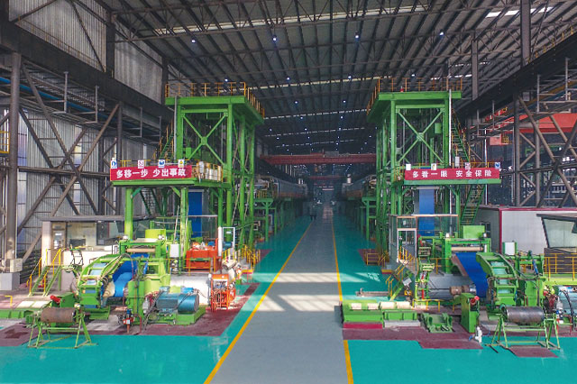 公司擁有1420酸洗冷軋聯合機組(PL-TCM)一套,機械由中國一重及中冶南方共同設計制造,電氣采用上海寶信軟件自動化控制系統,機組設備配置合理,整體裝備達到國內一流水平。機械設備涵蓋激光焊接設備、噴射紊流式酸洗設備、高精度雙塔式切邊設備(SMS)、五機架竄輥式UCM連軋機、新型回轉式雙卷筒卷取機,軋機電氣采用秒流量控制系統。